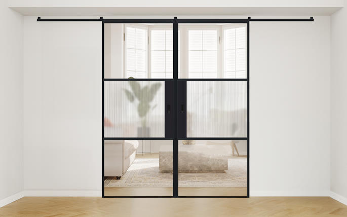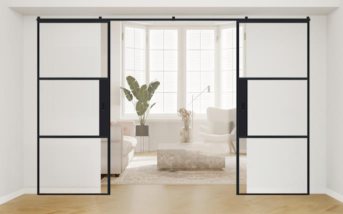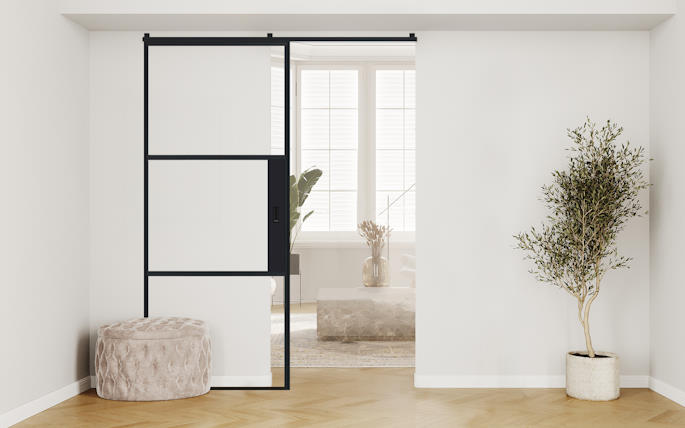 AluSpace Over Wall Sliding Doors offer a stylish and flexible way to divide interior spaces. Like all our AluSpace doors, they feature ultra-slim aluminium frames and expansive glass panels to maximise light and openness. What makes them unique is their ability to slide over the wall, outside the reveal, with the added benefit of a fully concealed top track for a clean, minimalist finish. Perfect for creating a seamless connection between rooms, or closing off areas to make cosy, private spaces when needed. Available in a range of standard sizes and configurations, or choose a custom-made solution to suit your space.