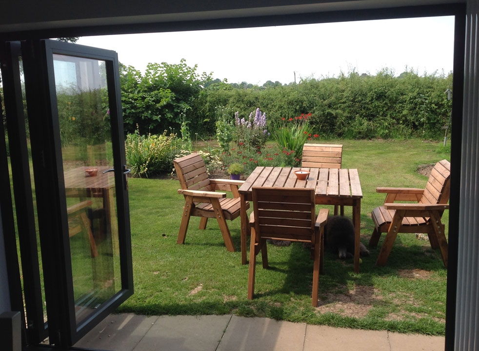 The doors went in with no problems and now the couple are reaping the rewards and benefits of the warm summer.
